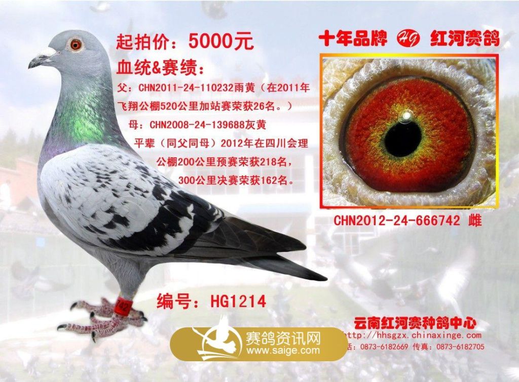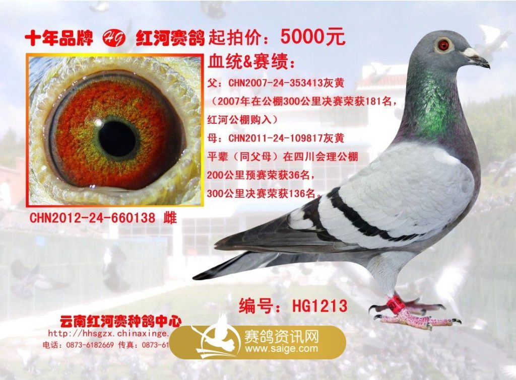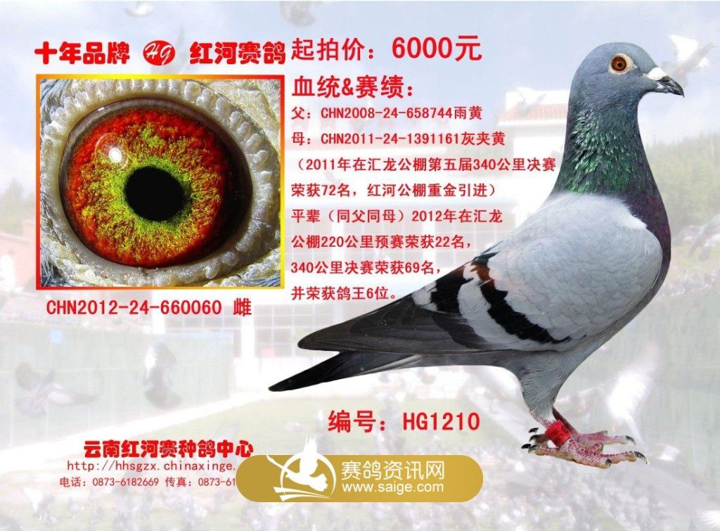 喜迎新春,为感谢新老鸽友多年以来对红河公棚的支持与关心,特挑选赛程中刊登的8羽红河种鸽优惠回馈给信鸽爱好者: 1、 一次购买1羽8折优惠。(带血统书赠相框) 2、 一次购买2羽7折优惠。(带血统书赠相框) 3、 一次购买3羽6折优惠。(带血统书赠相框) 4、 一次购买4羽以上5折优惠。(带血统书赠相框) 欢迎来电咨询:13608736566,18987388979