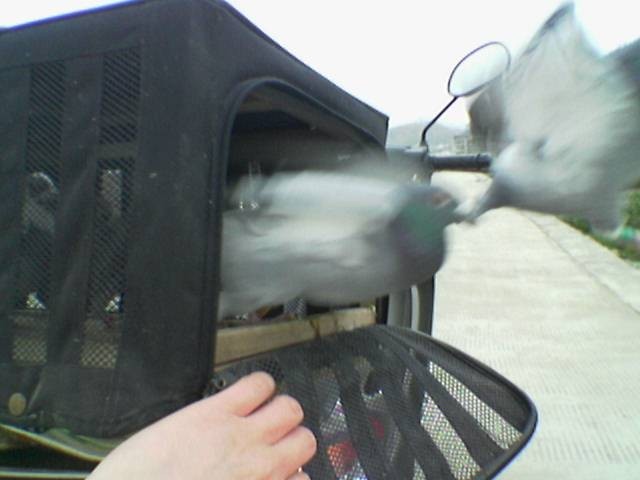 因为天气关系,原打算放20公里改为放15公里.把鸽笼放上摩托车,准时赶到训放点,8点放出.鸽子在上空盘旋了好长时间才向鸽舍方向飞去.等我骑车回到鸽舍,15羽鸽子已经全部到了.