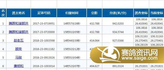 时间到了14:18分,一羽雨点赛鸽背着"剪刀翅"个从天而降,转眼就钻进了棚内,大屏显示是广东汕头新东兴-陈凯的冠军鸽,分速为1028.4846米/分。这时地方俱乐部适时在线网站上却静悄悄的。一分钟不到广西柳州宏生吹膜厂的亚军也拍马赶到,刚进棚四川成都杨伟的季军也单羽杀下……前十名都是单羽飞归,却是一羽紧接一羽不曾间断,大家鸽友在欢呼过瘾的同时,大声讨论着今年地方俱乐部输惨了!