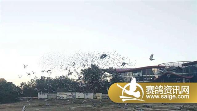 赛鸽冲出两辆放鸽车后一圈不绕直接就飞向家的方向,转眼就没了踪影。