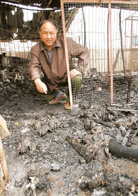 鸽棚的主人徐师傅在接到邻居的电话后匆匆赶来,他看到眼前惨景后,当场瘫倒在地,邻居赶紧将他搀扶起来,他走到鸽棚旁,悲痛欲绝。他告诉记者,鸽棚内养有110羽鸽子,没想到全部葬身火海了。 徐师傅说,他从小就酷爱信鸽,因此从7岁就开始养鸽子,现在是市信鸽协会的会员,他养的信鸽在徐州地区有一定的名气,在多次的信鸽比赛中拿到大奖,这次火灾让他损失很大。 他说,5月13日有5羽信鸽参加了从徐州至陕西临潼的放飞比赛,万幸的是,那5羽信鸽尚未归来,否则这次也难幸免。