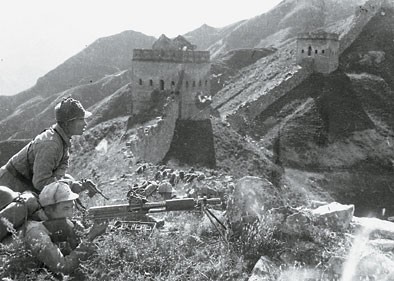 ▲1937年9月的平型关大捷后,中国共产党中央提出“开展敌后游击战争创造抗日根据地”的口号,把敌人的后方变成抗日的前线。这是战斗在长城上的八路军。