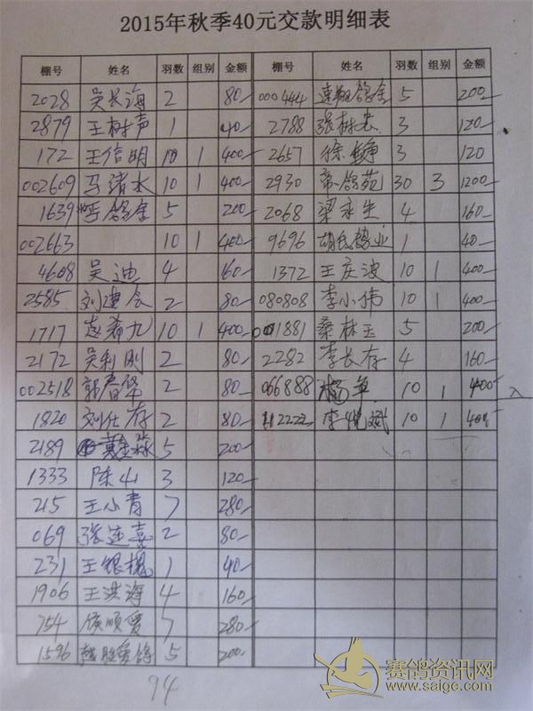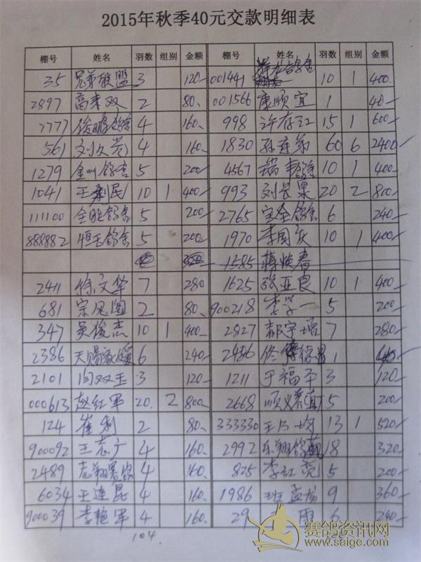 工作人员误把“王爱民”登记了两次,第二页第一个“901901-王爱民-10羽”应为“800000-邱树平-10羽”;第五页棚号“002663”棚名为“大伟亚南”;第四页棚号“001477”棚名为“好鸽缘”。