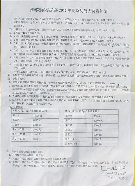 福州市闽都赛鸽俱乐部2012年夏季幼鸽大奖赛计划(站内收藏 不发)