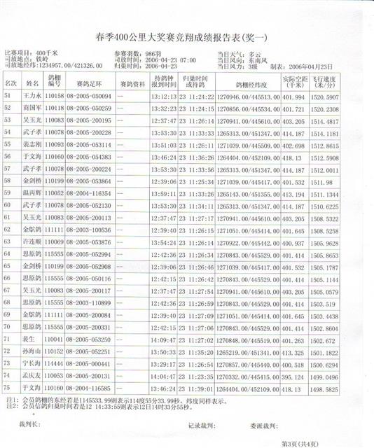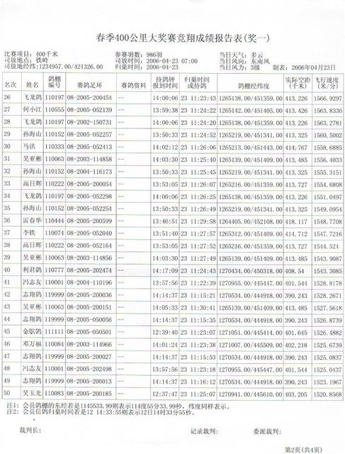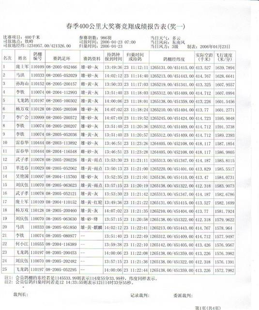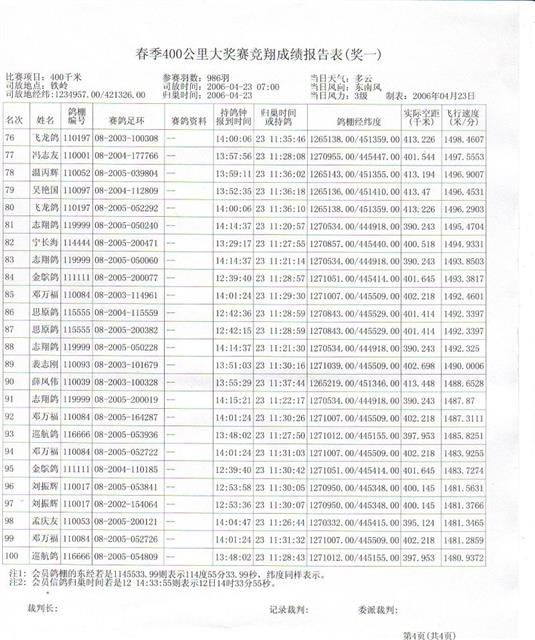 2006春季400公里大奖赛成绩