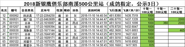 2018新银鹰俱乐部南溪500公里站(成鸽指定,公示3日)