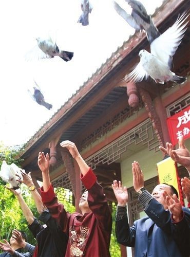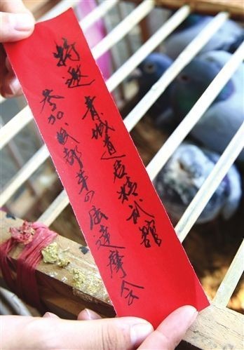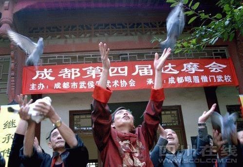 近日,峨眉僧门掌门人广邀天下武林高手,参加11月1日的达摩盛会。昨日他郑重地将写好的英雄帖绑在120只鸽子的右腿上,随后,这些鸽子从望江公园内振翅起飞。届时峨眉、武当、白鹤门、查拳门、龙门、少林、终南派、八卦等十八个门派高手,都将会手持英雄帖如约而至。 送英雄帖百只信鸽飞往18门派 昨日下午2点31分,峨眉僧门掌门人何伟琪,将最后一张写有“特邀青城道君精武馆,参加成都第四届达摩会”的红色纸条,小心翼翼地卷起来,绑在了一只灰色信鸽的脚上。随后打开五个分别装着20多只信鸽的鸽笼,一群信鸽从望江公园振翅起飞,盘旋一圈后转眼飞入云端,向各个门派所在的方向飞去。 据何琪伟掌门介绍,这次达摩盛会一共邀请了18个门派的高手。他们没有用电话、短信、网络等先进快捷的通讯方式,而是选择了已经被人们淡忘了近百年的“飞鸽传书”,来完成这次广发英雄帖的任务。从绑英雄帖到放飞120只信鸽,整个过程都让围观的市民啧啧称奇。“我只在吴宇森的电影里面见过传说中的飞鸽传书,今天算是碰到奇事了。”26岁的王蕴哲小姐笑着说道。 据了解,这些信鸽共约120只,飞行距离最近的是少林昭觉门,目的地就在成都昭觉寺,只需要10分钟即可飞到。最远的是河南嵩山,信鸽需要连续飞行2天。 自带信鸽一两个月前送到成都 这群信鸽如何能找到飞往各大门派的路呢?这个问题引起了众多市民的好奇。白鹤掌门的唐承仁向大家道出“飞鸽传书”的玄妙之处。原来,在准备举办达摩盛会之前,就已经通过现代通讯方式通知了全国各大武术门派。由决定参会的门派派专人送信鸽到成都。早在一两个月前,他们就收到了送来的鸽子,每天用玉米、豌豆等喂食。 信鸽送信,是利用了信鸽的回巢能力。也就是说,只能是带出去的信鸽,往“家里”送信,而不是自由往来的。这些来自各个门派的信鸽,只要打开鸽笼,自然就会本能地飞回饲养的地方。 确保成功少林寺送来十多只 “这些信鸽金贵得很哦,身价都在3000元以上,最贵的达到了1万元。”唐承仁还介绍,古时候为了确保信鸽送信的成功率,同一个目的地,不会只放飞一只信鸽。这次河南嵩山少林寺送来的信鸽最多,有十多只,预计两天后能飞回河南嵩山。而最近的成都昭觉寺,一般只要10分钟即可飞到。 武林传统效果好将沿用下去 原本发一条短信或是打一个电话,一分钟就能搞定的事情。为何这么大费周章,要用飞鸽传书的形式呢?何伟琪介绍,古人就是利用烽火狼烟、绳结、信鸽等方式来递信息的,而飞鸽传书更是古代武林界重要的传统仪式。在通信日益发达的今天,飞鸽传书也只是对“传统”的演绎。何伟琪说:“如果效果不错,四川武林界将把这种传统通信方式继续沿用下去。” 昨日下午2点50分昭觉寺最先收到书信 随后,记者下午3点左右联系上了昭觉寺的广兴大法师。法师说,他们已经在2点50分左右收到了一只灰色飞鸽送来的书信,并表示将会准时参加下周在成都举行的武林大会。