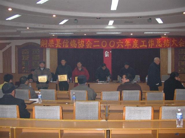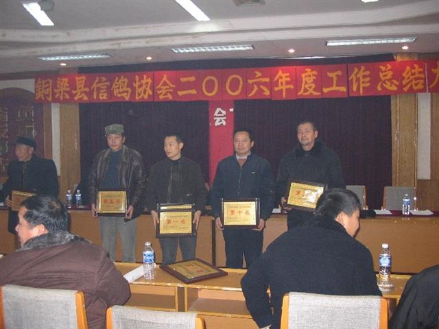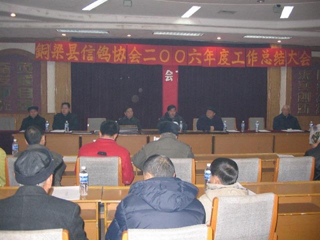 我县2006年年终总结大会在我县政协会议室,由协会主席和体委负责人共同主持召开 1:总结会上对春。秋赛300-1000公里的获奖人员及优秀鸽进行了表彰! (我县刘大平的海霸王鸽在秋赛宁强站中获得冠军) 2:对2006年的财务收支,在大会上对会员作了详细的公布。 3:对2007年的工作怎么开展有了进一步的部署。 下面是大会现场发回的图片: