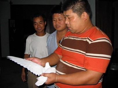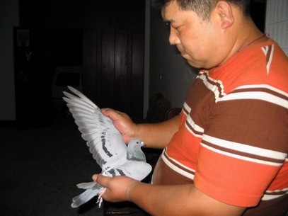 今天晚上训200公里,我让李宏把鸽子捉出来,仔细观察了鸽子的状态,今晚送去希望明天能够顺利归巢 .