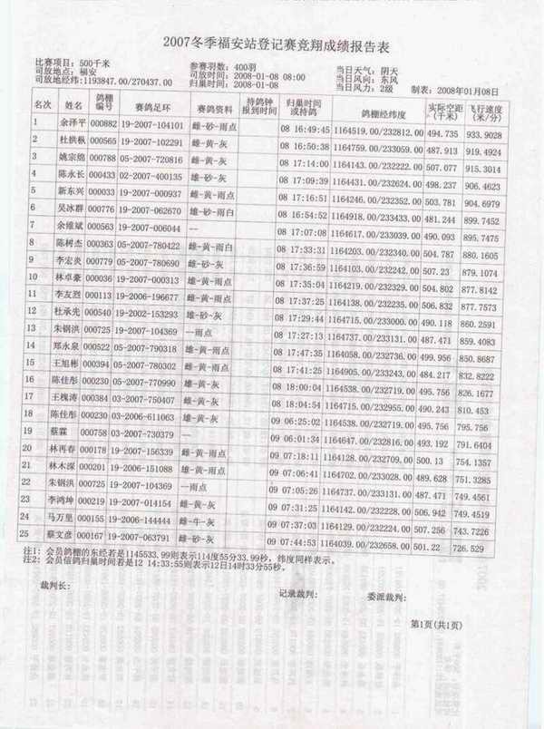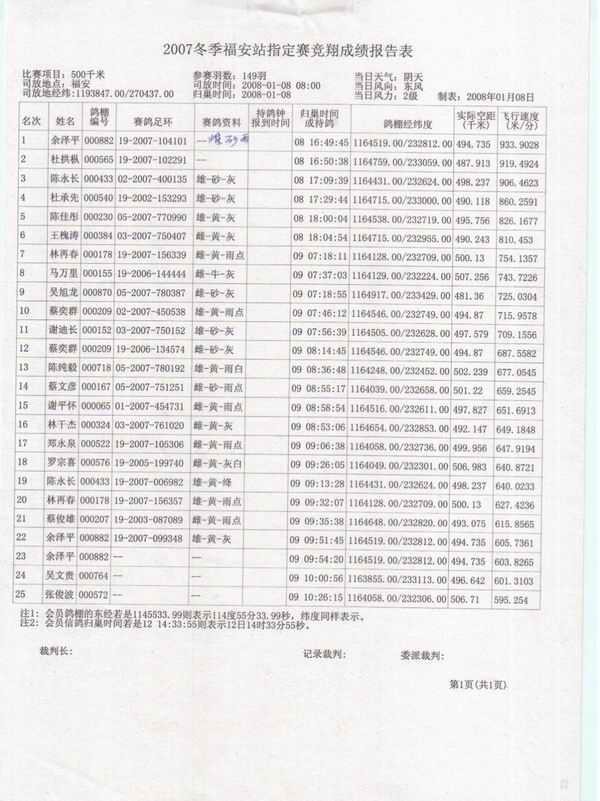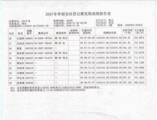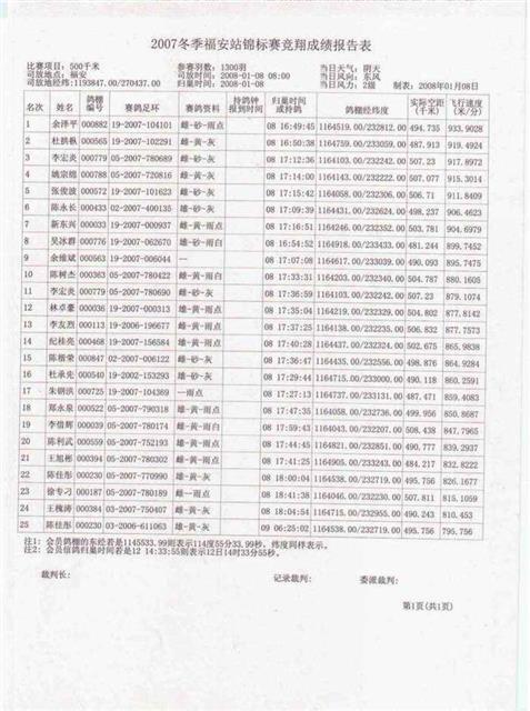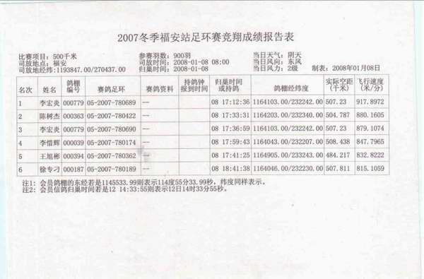 以上成绩如无疑义,三天后将颁发奖金。 咨询电话:0754-6355322 汕头龙湖信鸽协会 2008年1月13日