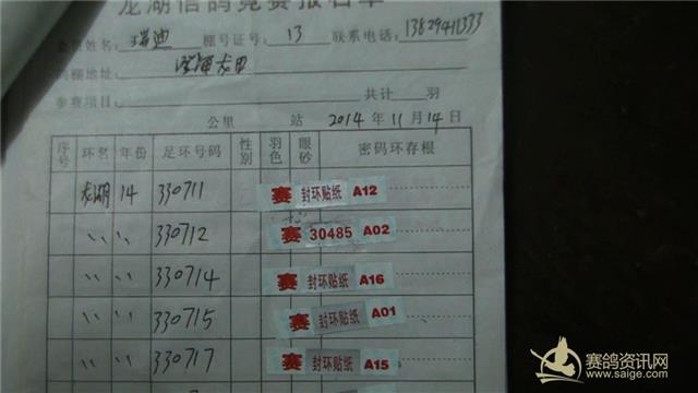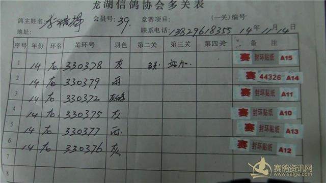 2、吉翔鸽舍-2014-龙-330207:决赛亚军、指定A亚军、登记亚军