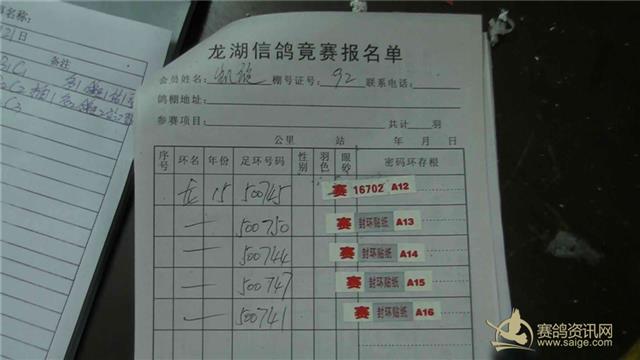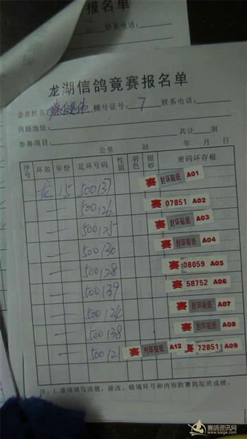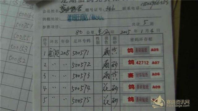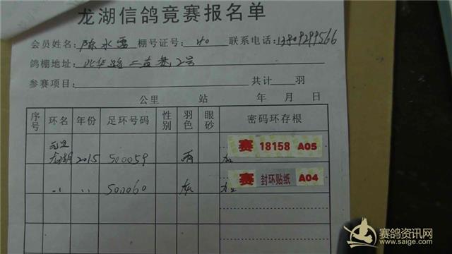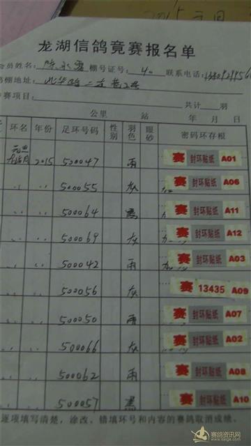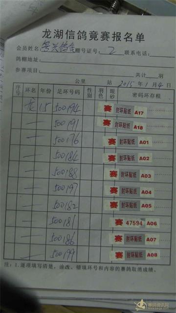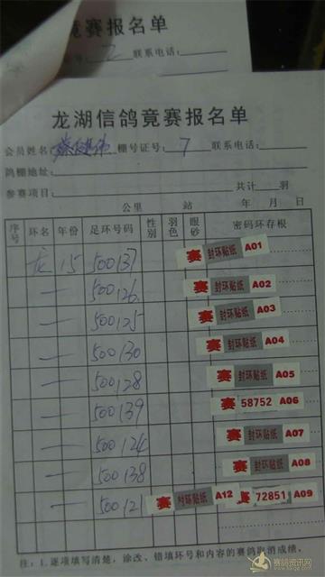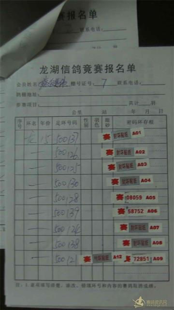 9蔡建伟-2015-龙-500128:决赛第九名、多关季军、鸽王季军、双关亚军