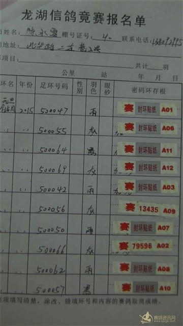 10粤兴鸽舍-2015-龙-500181:决赛第十名