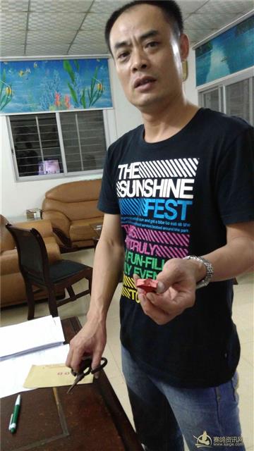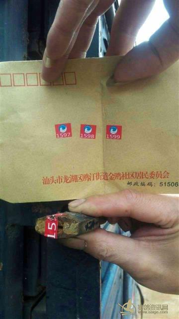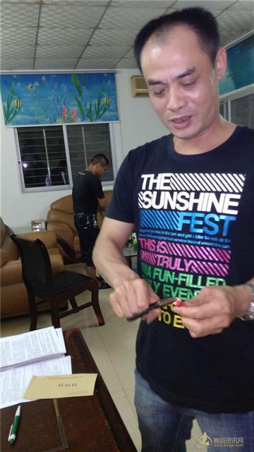 随车监放员为2015年元旦决赛站大奖冠军鸽主陈水雷代表集鸽后销毁印鉴: