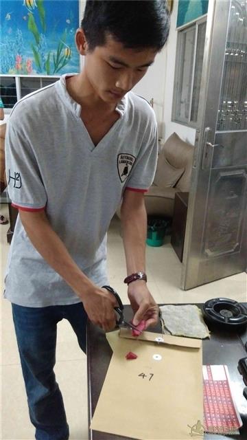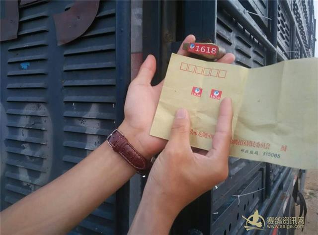 随车监放员为2015年春季预赛亚军鸽主陈嘉彤代表集鸽后销毁印鉴: