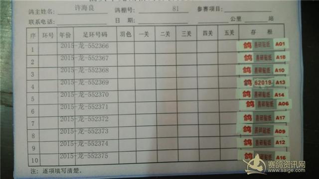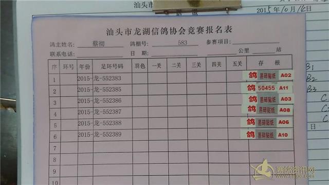 2015汕头市龙湖鸽会秋季5区西北三关鸽王赛第一关验鸽验棚图