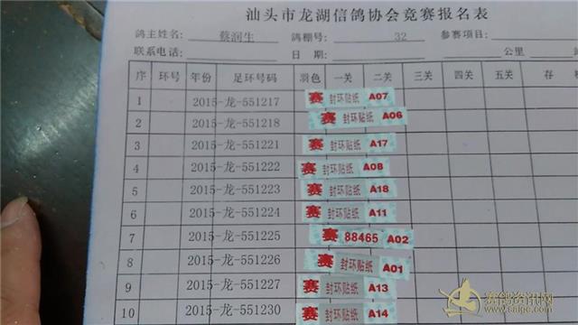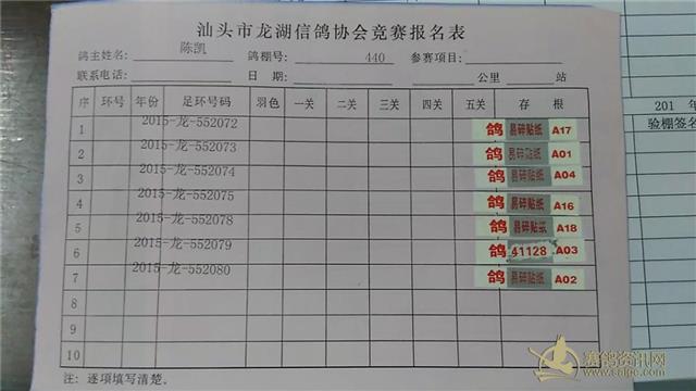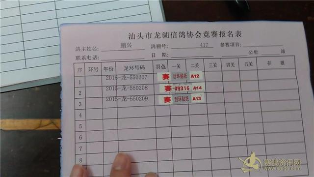 7奕翔鸽舍 2015-龙-552802:第一关第7名、指定A冠军