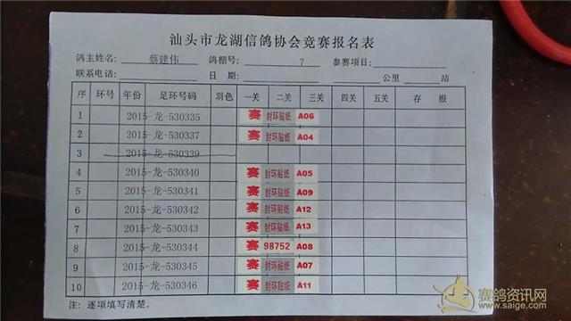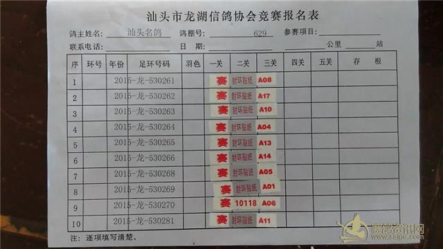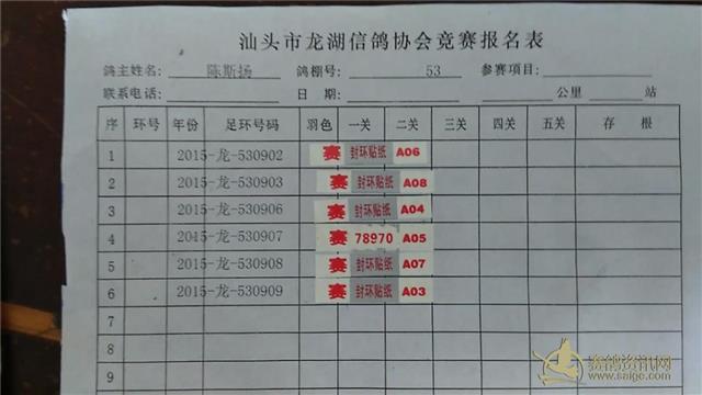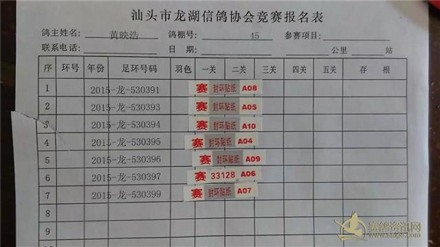 14汕头名鸽2015-龙-530270预赛第十四名、指定C季军