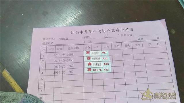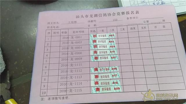 1汕头名鸽 2016-龙-0823 决赛冠军 2汕头名鸽 2016-龙-0825 决赛亚军、指定A冠军、指定B冠军、指定C冠军、插花冠军、双关冠军、登记冠军、站站加冠军、多关冠军、鸽王冠军
