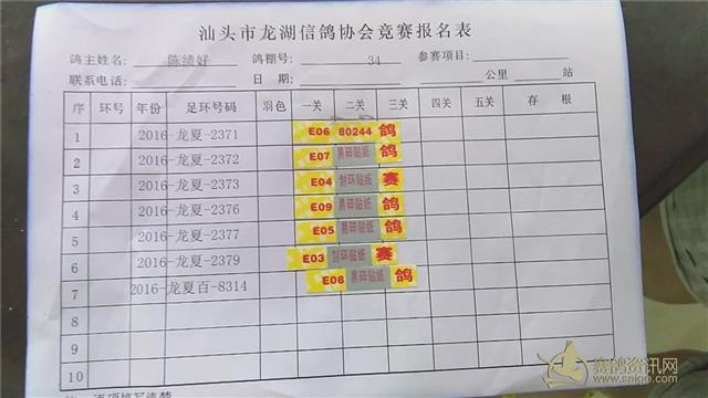 汕头龙湖鸽会16夏季竞赛预赛验鸽验棚图
