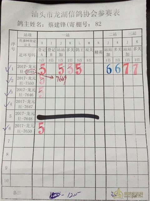 汕头龙湖鸽会17元旦竞赛足环更正公告