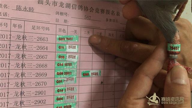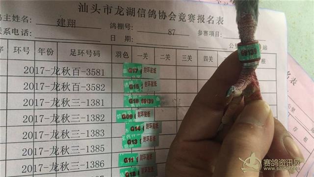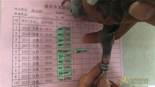 第1名 陈永睦 2017-龙秋三-2660 第2名 陈永睦 2017-龙秋三-2663 指定A冠军、 第3名 陈永睦 2017-龙秋三-2903 指定A亚军、 第4名 陈永睦 2017-龙秋三-2668 指定A季军、 验鸽:
