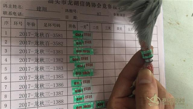 第6名 建翔 2017-龙秋三-1381 指定B冠军、插花A冠军、插花B冠军 第10名建翔 2017-龙秋三-1385 指定B亚军、 验鸽: