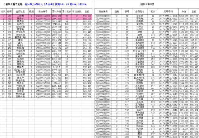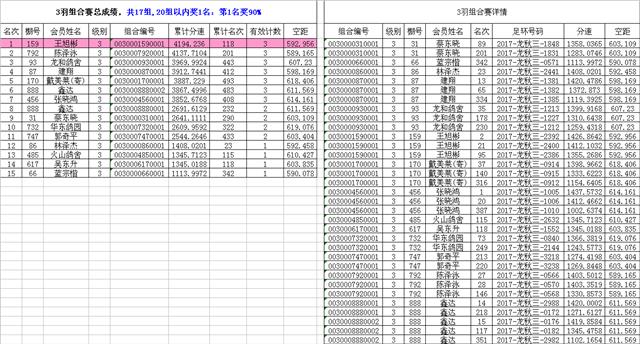 汕头龙湖鸽会17秋季竞赛第三关(平阳)组合赛总成绩,请校对