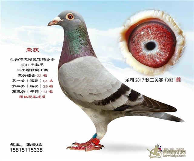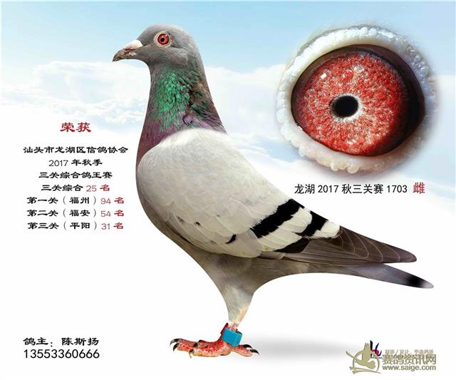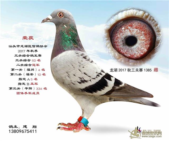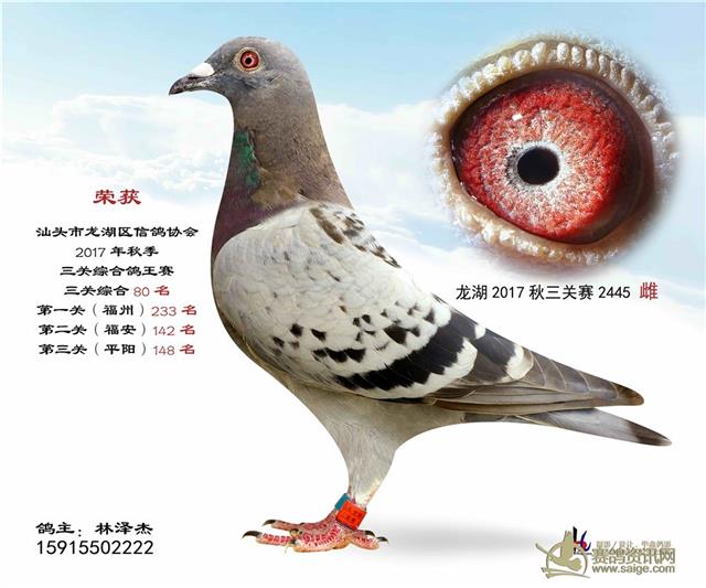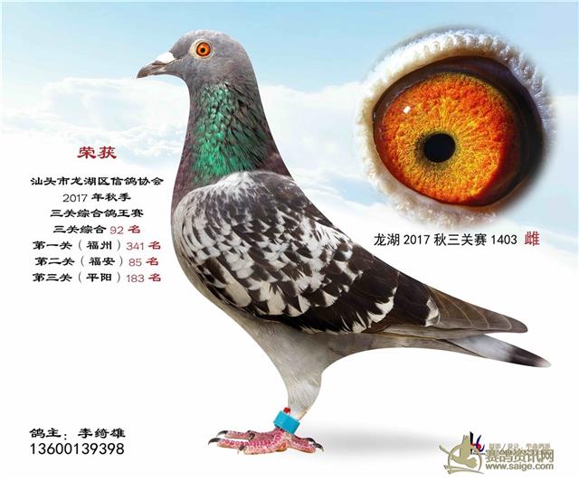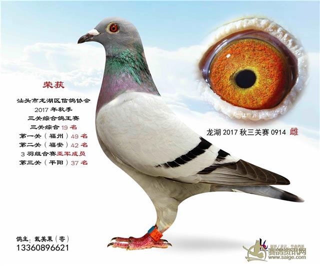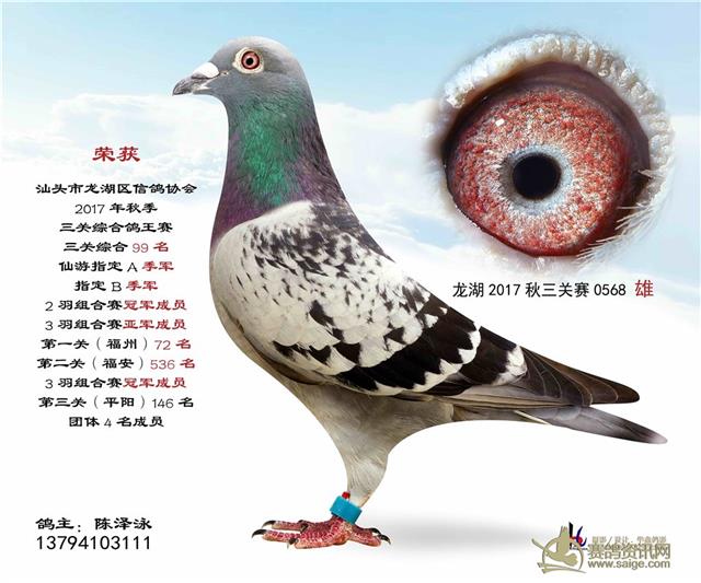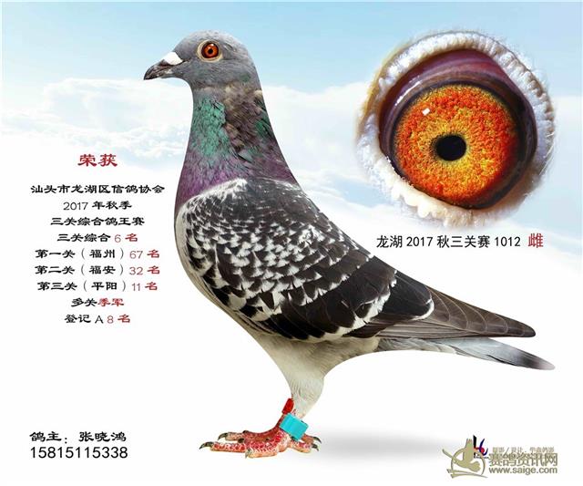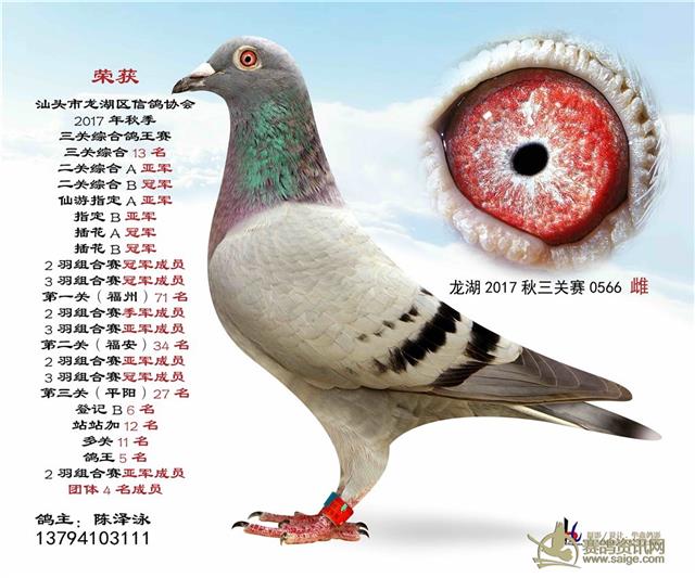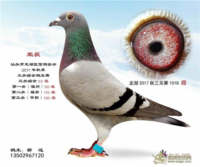 汕头龙湖鸽会17秋季竞赛三关综合鸽王赛---100名获奖鸽照片(请鸽主查阅,如有误差请与鸽会联系)