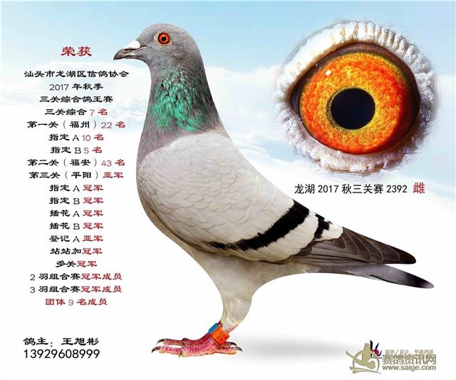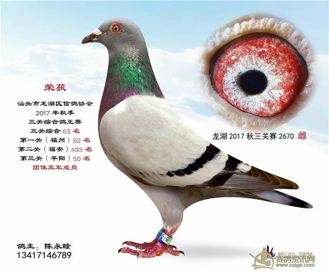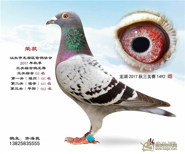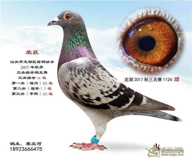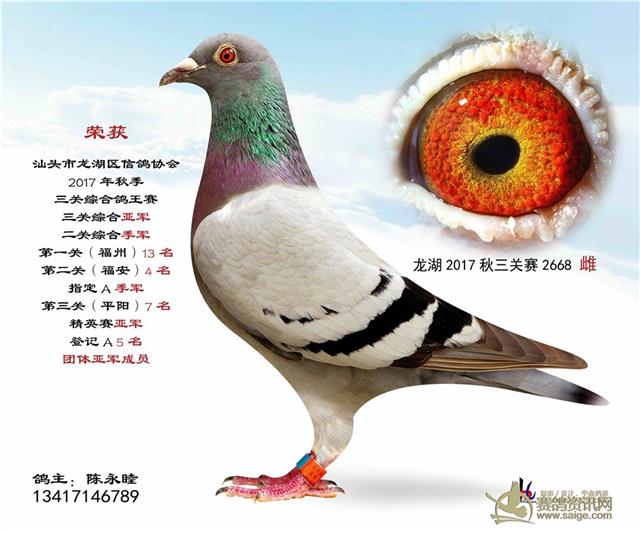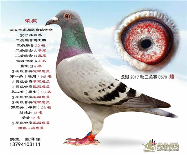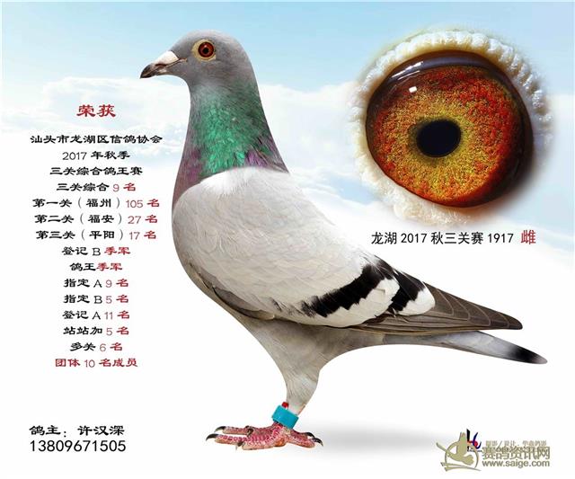 汕头龙湖鸽会17秋季竞赛三关综合鸽王赛---100名获奖鸽照片(请鸽主查阅,如有误差请在10月30号前与鸽会联系修改,因需洗照片)
