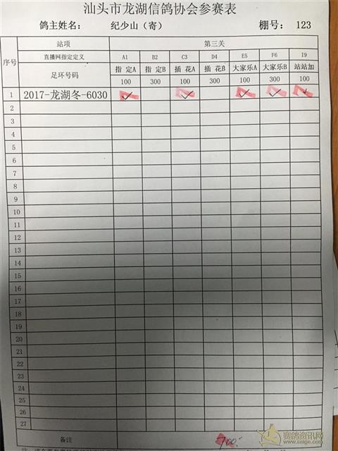 汕头龙湖鸽会17冬季竞赛第3关(福安)指定赛更正公告--插花B39羽更正为38羽,大家乐B76羽更正为77羽,请校对,如有误差请于今日23点前修正有效