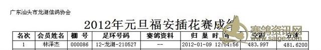汕头市龙湖区信鸽协会2012年元旦竞赛福安插花赛成绩,请校对