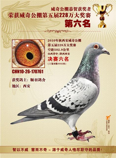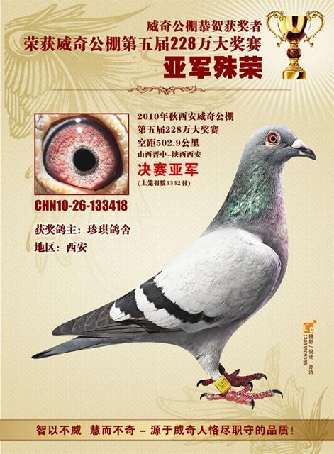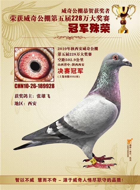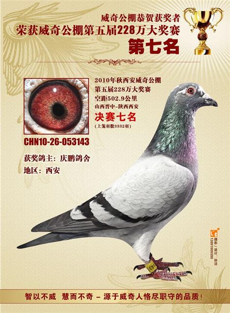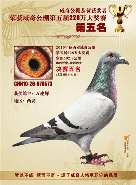 西安威奇公棚第五届228万大赛获奖鸽照片(1-300名)