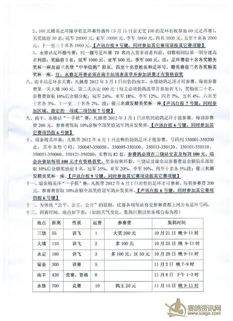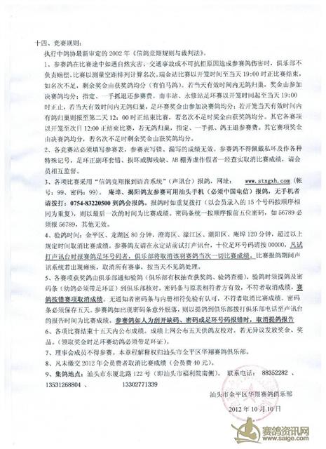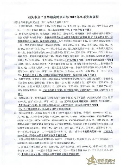 汕头市金平区华翔赛鸽俱乐部2012年冬季竞赛规程