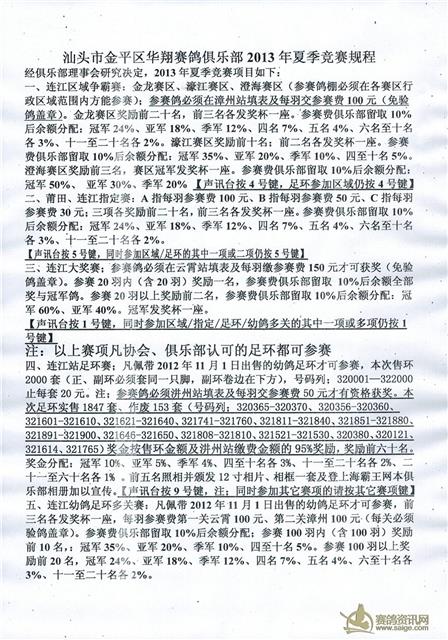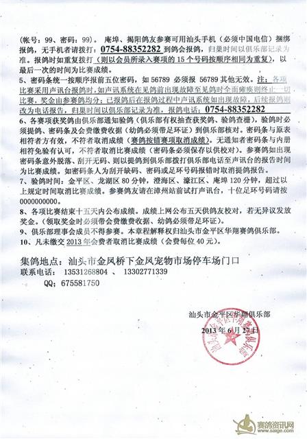 汕头市华翔俱乐部2013年夏季竞赛章程