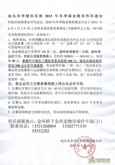 汕头市华翔俱乐部2013年冬季瑞金精英售环通知