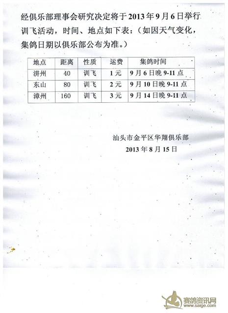 汕头市华翔俱乐部13年秋季赛前训飞通知