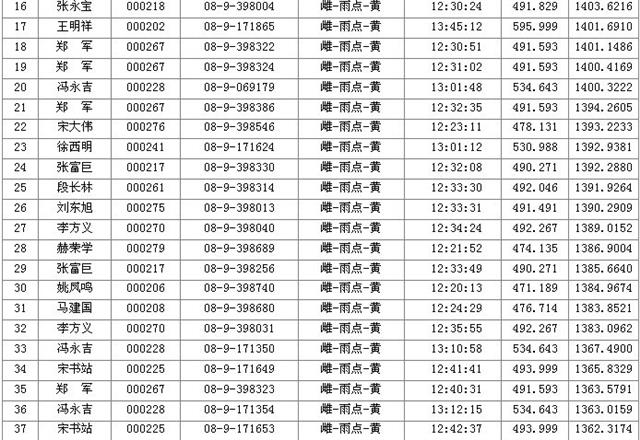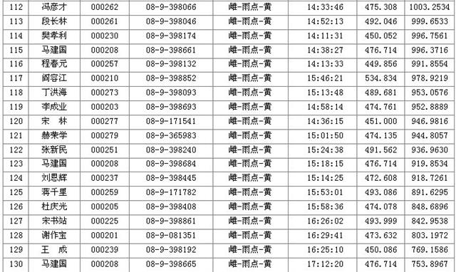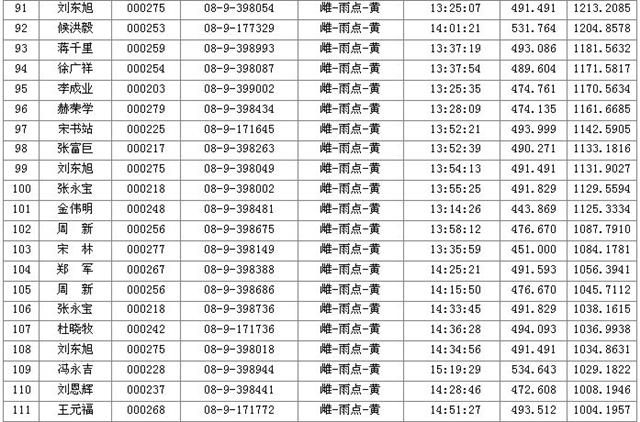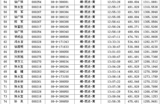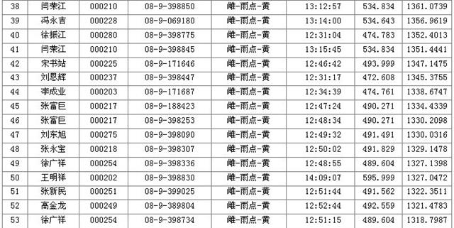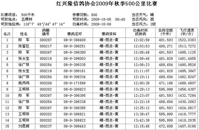 红兴隆信鸽协会2009年秋季500公里幼鸽普赛成绩