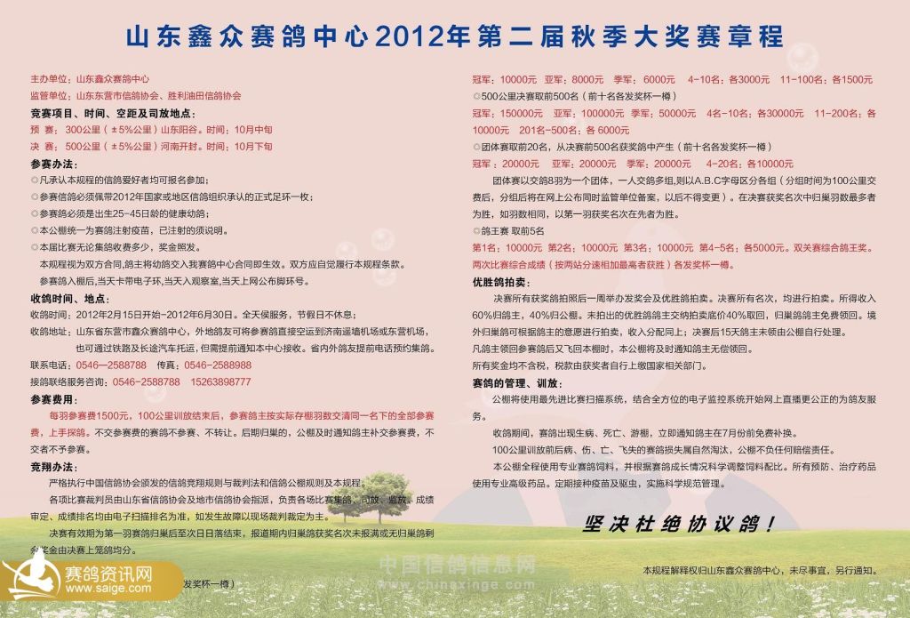 山东鑫众赛鸽中心2012年第二届秋季大奖赛章程(彩页版)