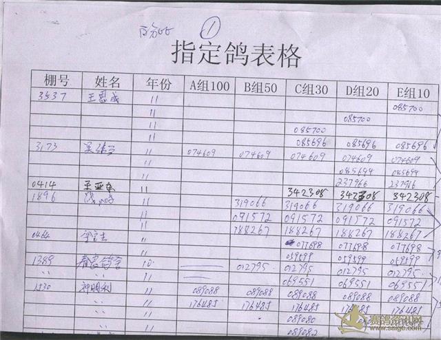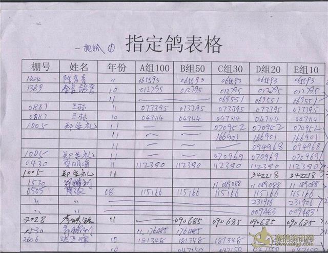 500公里指定鸽明细