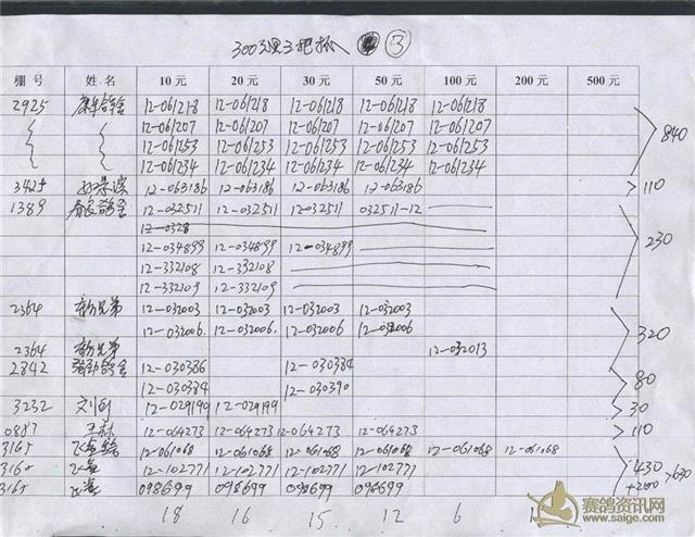 300公里指定鸽明细