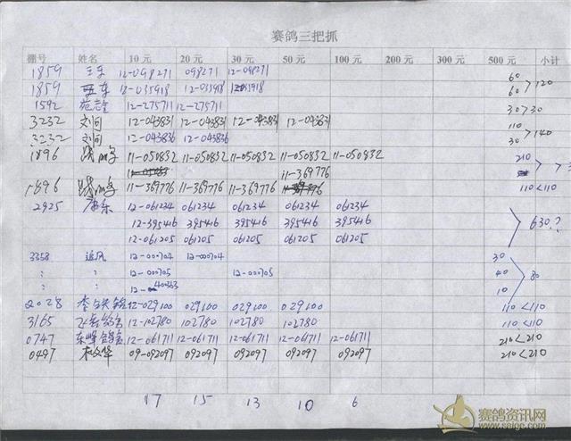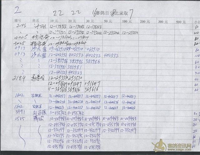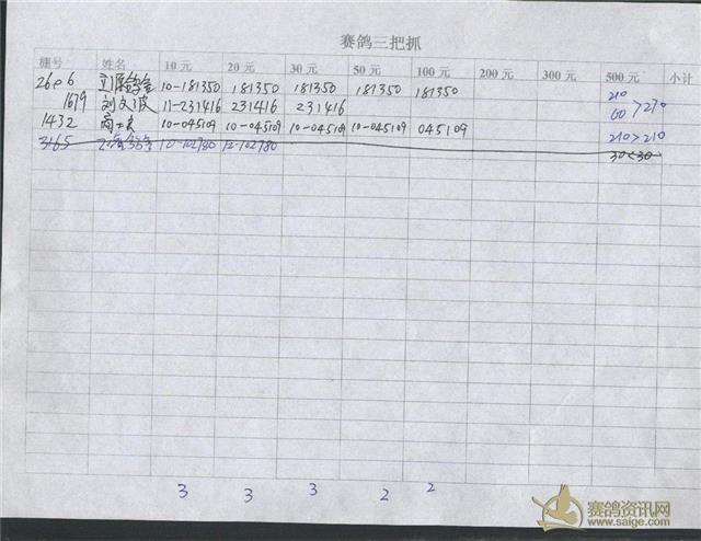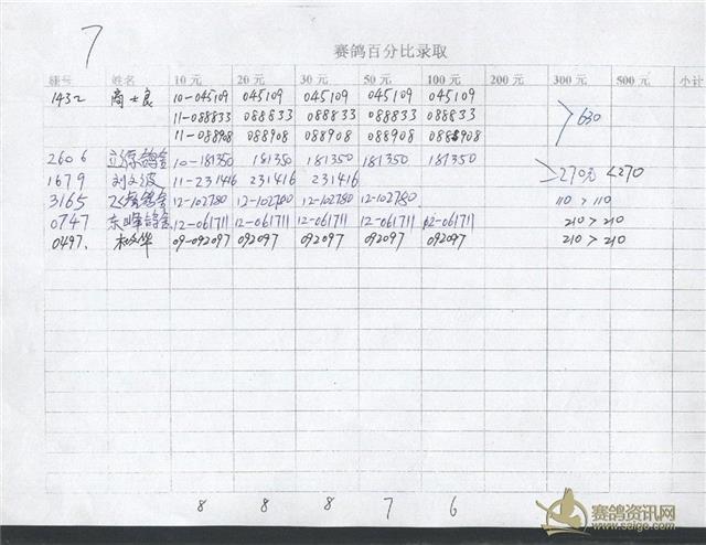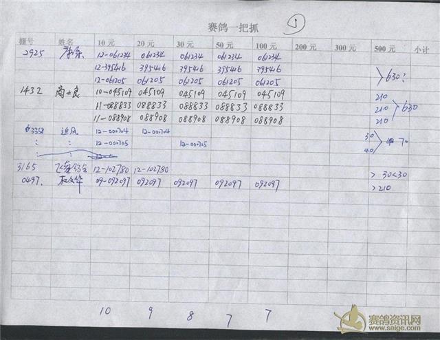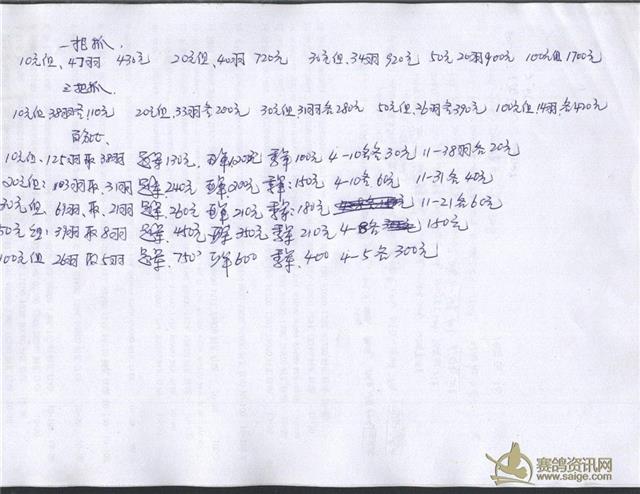 300公里指定鸽明细