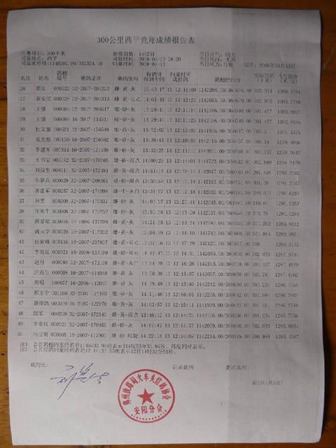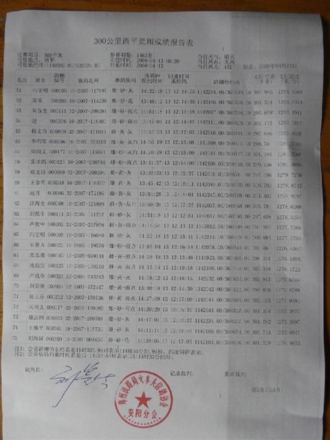 安阳铁路信鸽协会300公里西平站普赛成绩单