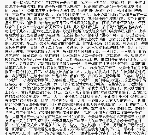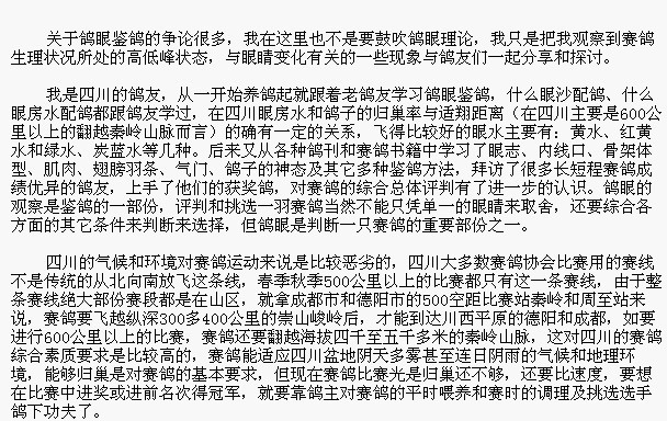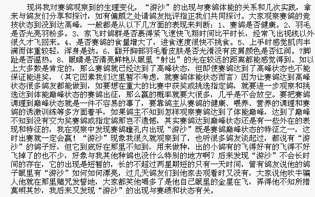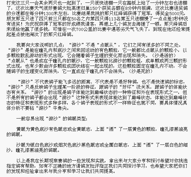 赛鸽瞳孔内的“游沙”是赛鸽颠峰状态的表征之一
