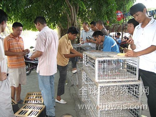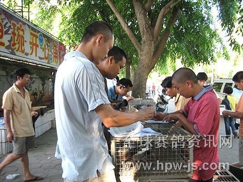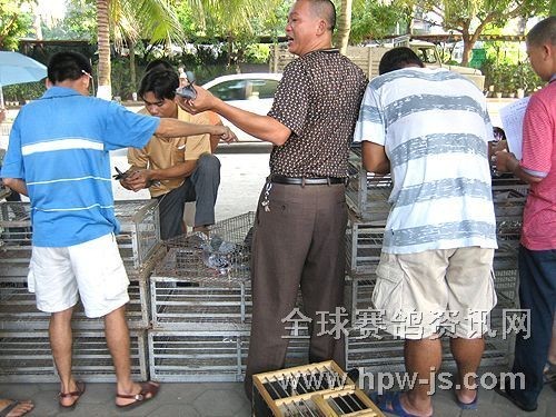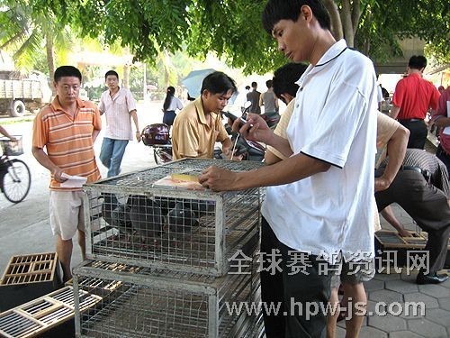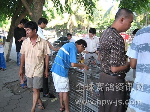 2006年5月12日晚17:00分~18:30分,海口金海岸赛鸽俱乐部300公里决赛集鸽现场 今天最高温度34度。 海霸王海南一线管理员现场报道。