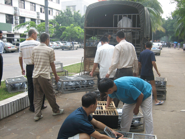 放鸽笼不够专业,在运输过程中鸽子的脚容易被卡到。不过海南鸽友的热情还是很高的。
