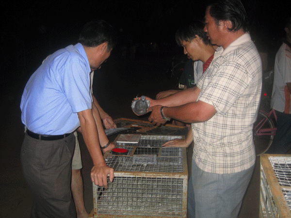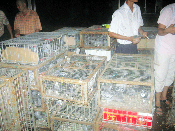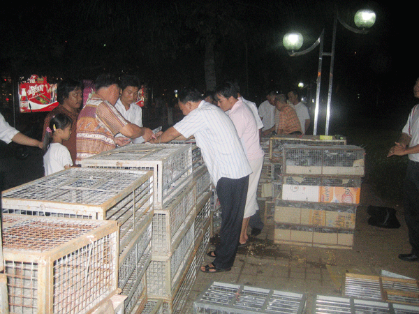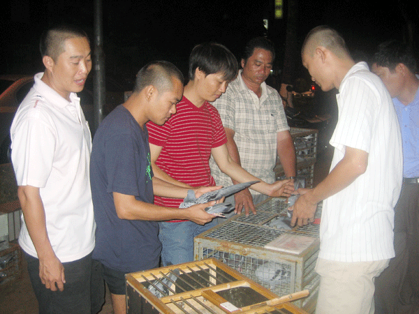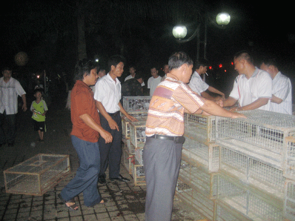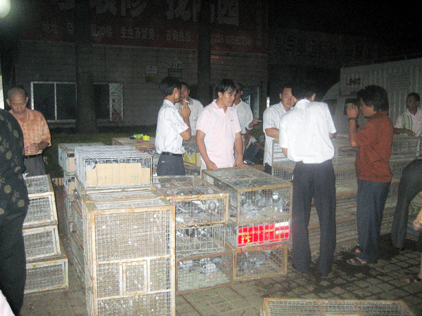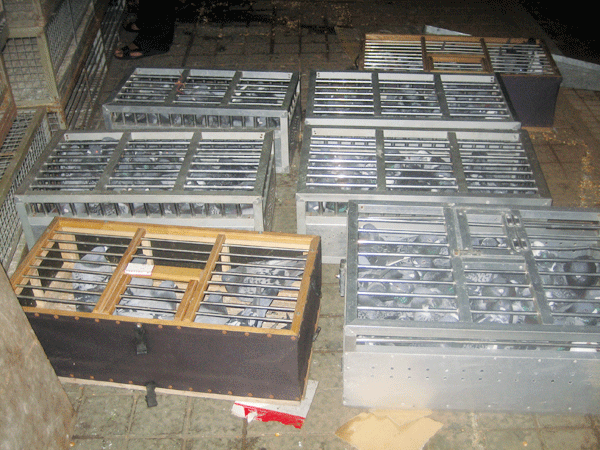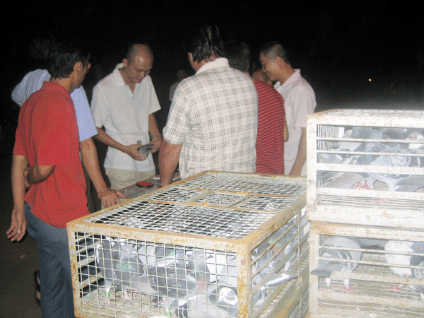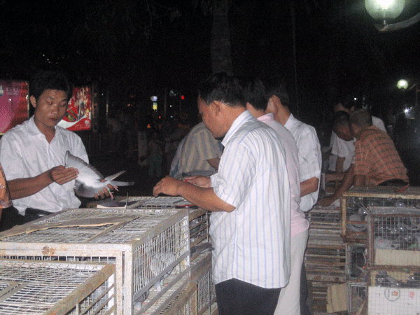 海南省信鸽协会2006年全省联赛暨第四届全国幼鸽排名赛海南赛区训放广东海安站于今晚(10月14日)19:00---21:00时在海口体育馆及分场海口人民广场同时集鸽,三亚市万宁市、琼海市、东方市、莺歌生活费等市县的信鸽均落续送至海口,图为集鸽现场。 海霸王一线管理员现场报道。