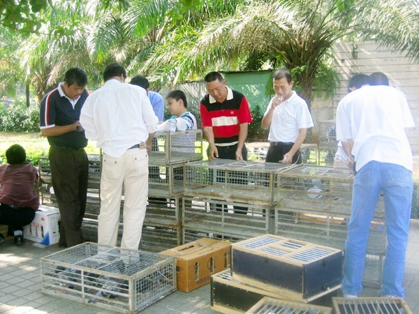 海南省信鸽协会2006年秋季300公里训练站广东阳江站于今日(11月5日)13:00时---15:00时在海口市体育馆集鸽,三亚市、琼海市、万宁市、乐东县、莺鸽海、昌江等市的信鸽也落续在海口集中。图为集鸽现场。海霸王一线管理员现场报道。