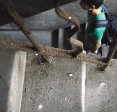 今天下午,记者来到建湘新村55栋,一些凝固的鸽粪粘在地上,到处散落着鸽毛;虽然楼梯间刚清扫过,仍有白色的斑点留在地上。