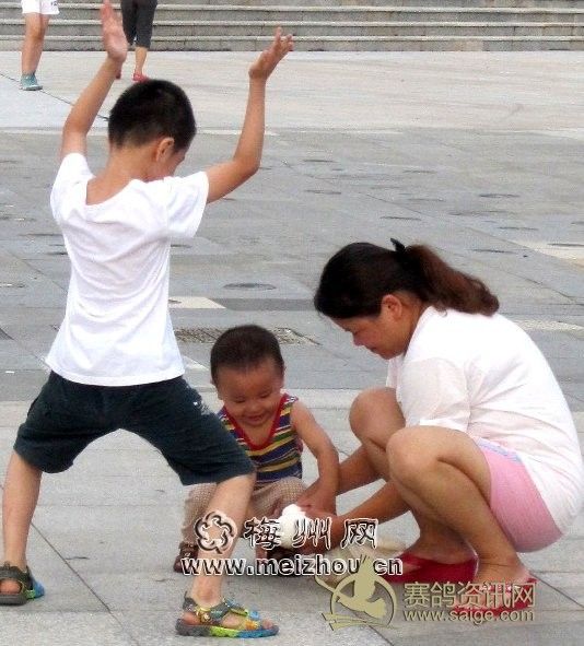 本报讯 梅城院士广场的白鸽是广场上的一大亮点 ,经常可以看到市民与鸽子互动,喂喂食、照照相。然而,记者却在这其乐融融的场景下,发现了不和谐的场面。